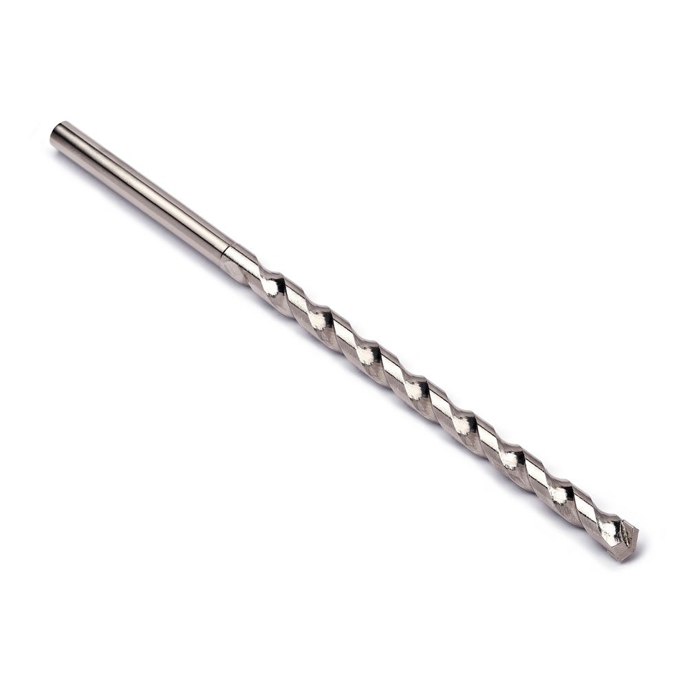 Broca de haste longa paralela feita em aço rápido e pastilhas de metal duro, conforme norma DIN 8039. Indicada para perfuração de concreto, azulejos e alvenaria em geral. Medida: ø 13/32 (equivalente a 10.0 mm).
