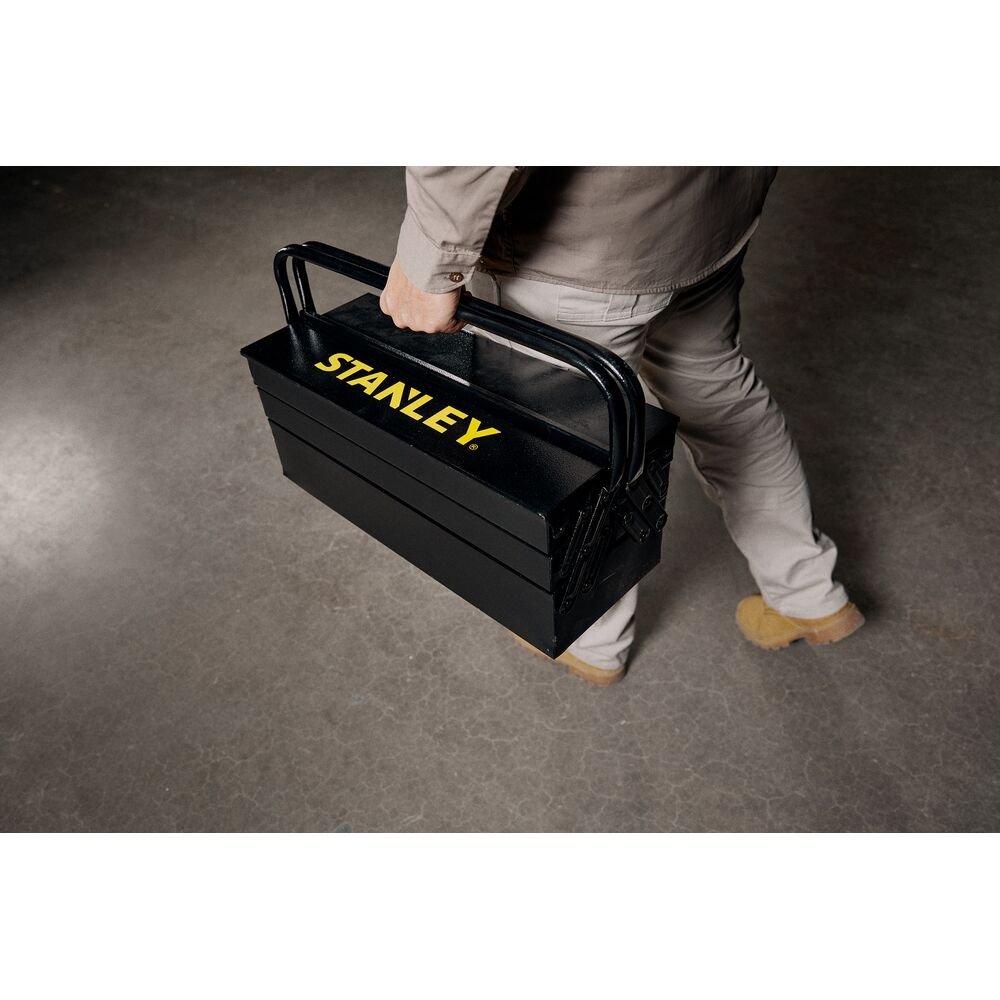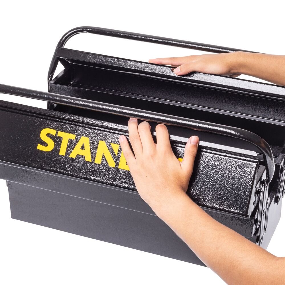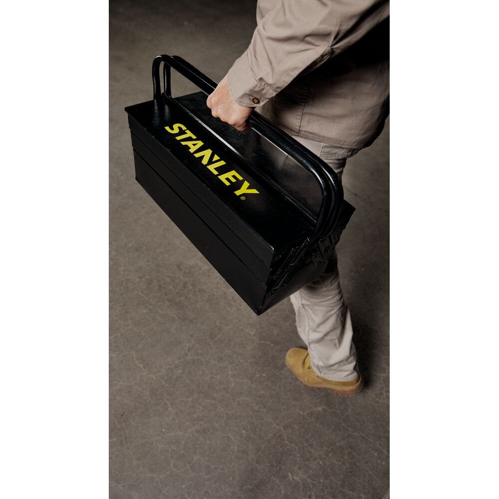 A Caixa de Ferramentas Sanfonada Stanley STST98724LA com 5 gavetas é ideal para quem busca organização prática e durabilidade no transporte de ferramentas manuais, peças e acessórios. Com estrutura em aço reforçado e acabamento em pintura eletrostática, garante resistência à ferrugem e ao uso contínuo em ambientes de obra, oficinas e indústrias.