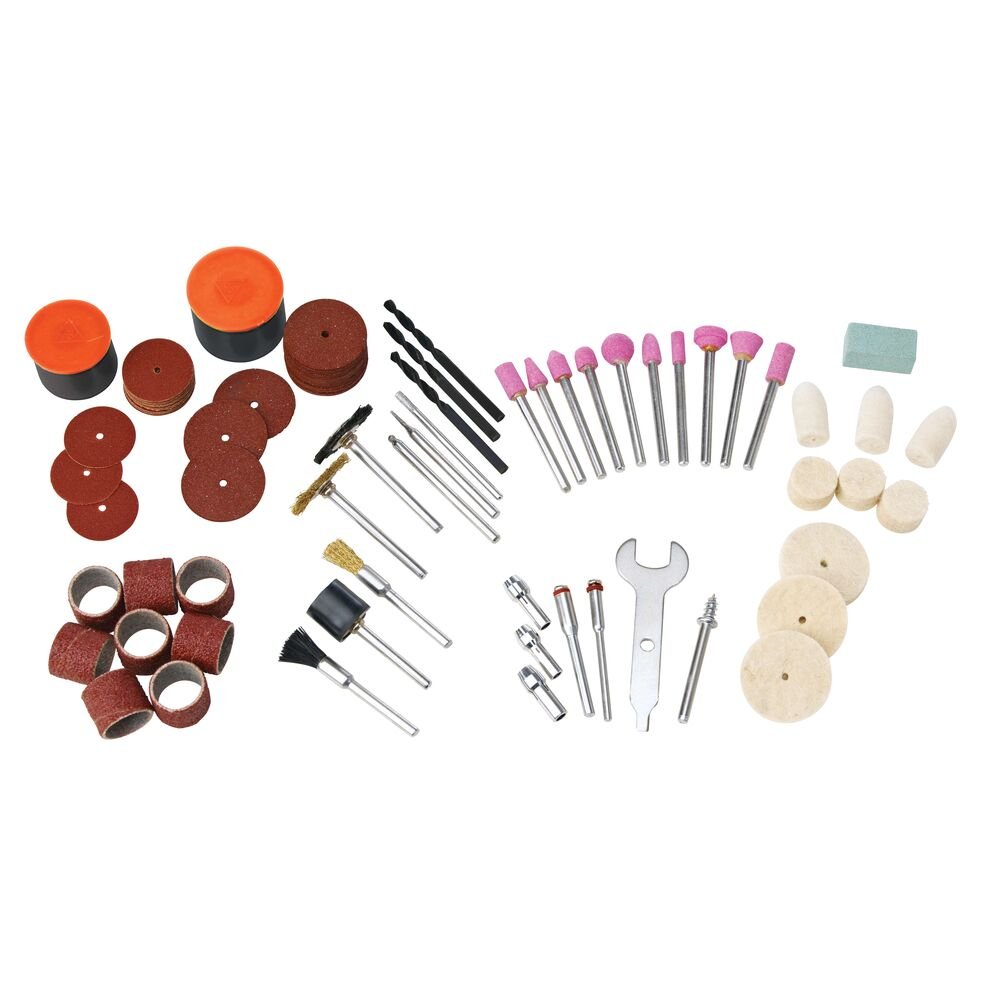 Acessórios: 113 peças variadas (discos, brocas, escovas, lixas, etc.)